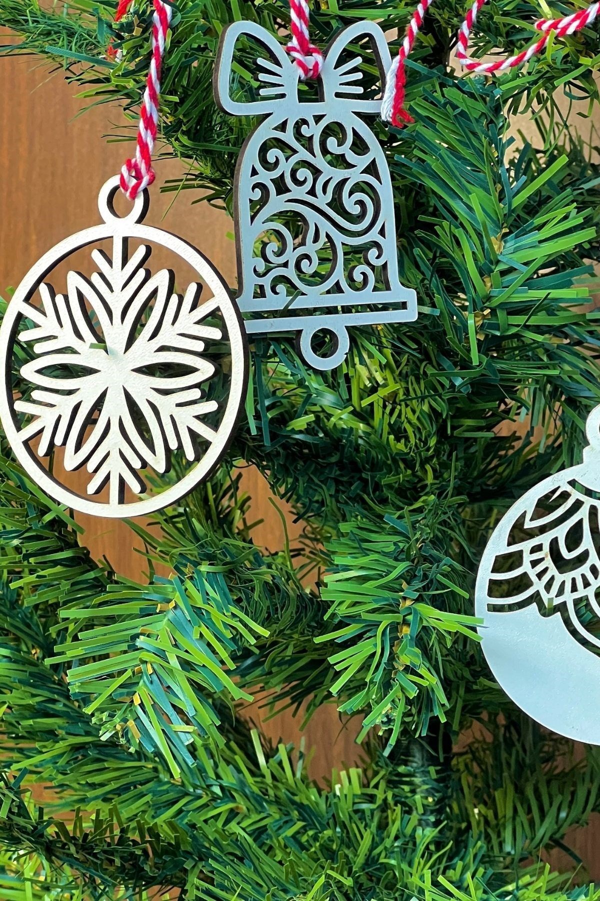 10 Parça Kırmızı Beyaz İpli Karışık Model Ahşap Yılbaşı Ağaç Süsü 🎄✨