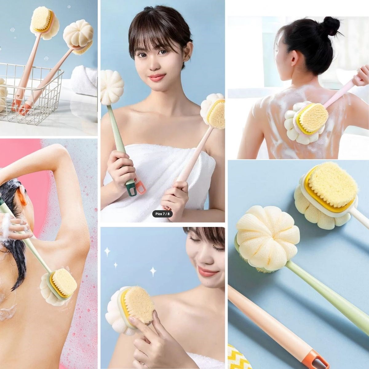 BUFFER® 2’si 1 Arada Çift Taraflı Uzun Saplı Fırçalı Banyo Vücut Fırçası & Banyo Lifi